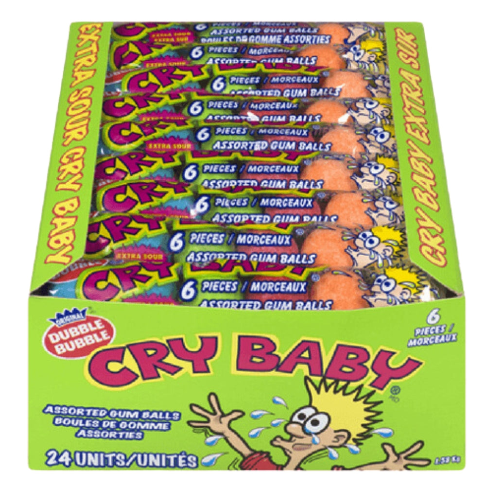 Cry Baby is the extra sour bubble gum that could make you cry. They're real tear-jerkers. But don't be a baby. Your friends are watching! Possibly the most sour candy in the world? You be the judge.