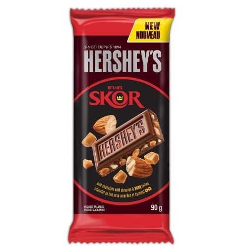 Gorgeously smooth classic Hershey’s chocolate mixed with the taste of crunchy Skor bars is what you’ll experience with Hershey’s with Skor Pieces. Skor toffee bits and chopped almonds await within the best of Hershey’s milk chocolate.