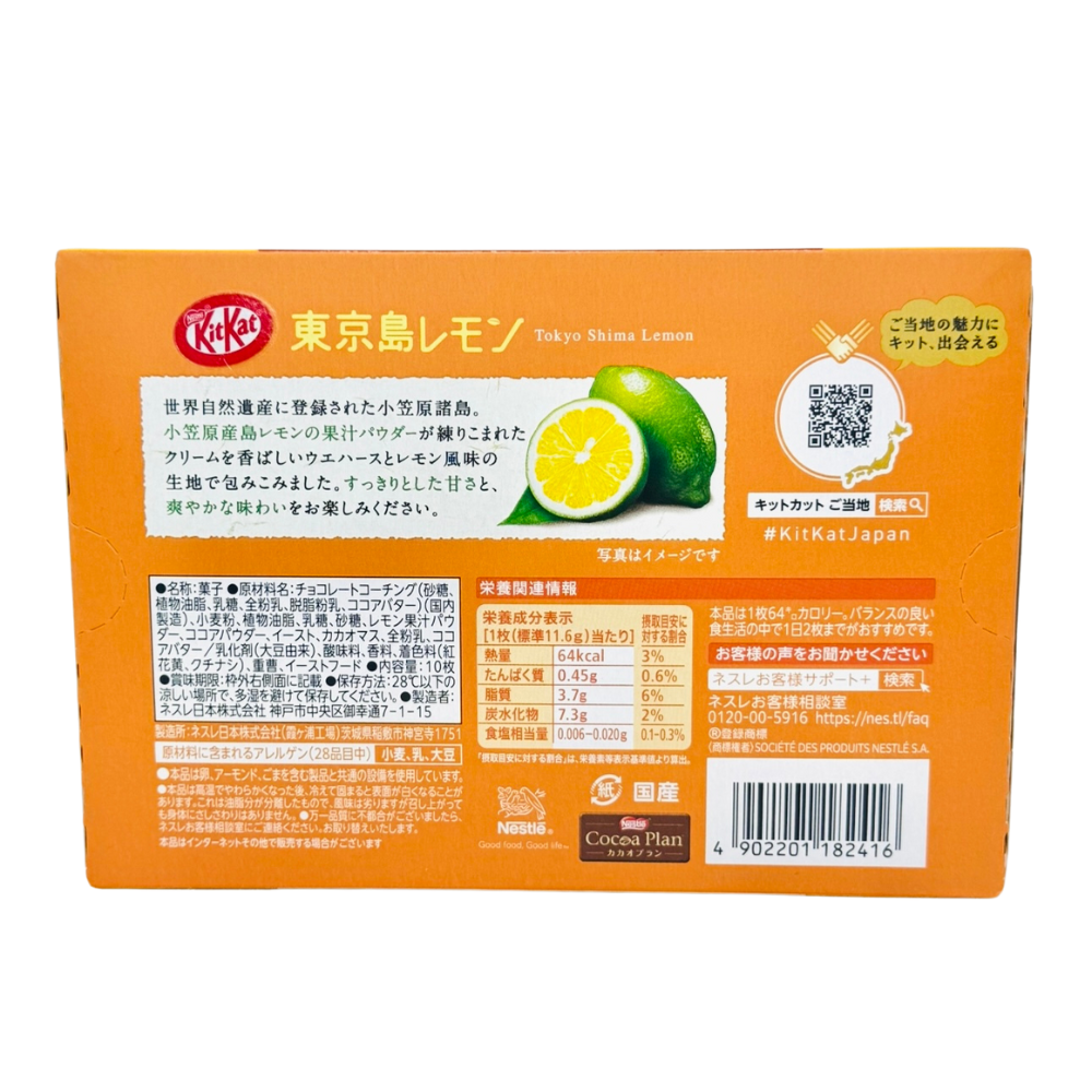 Discover the refreshing taste of Tokyo Shima Lemon with Kit Kat. This pack contains 10 pieces of delicious lemon-flavored Kit Kats from Japan. Each piece is 116g, making it the perfect snack for sharing or enjoying on your own. Don't miss out on this unique and tasty treat!