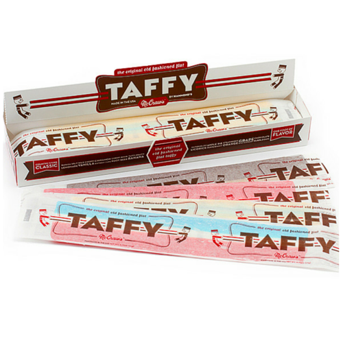 Thanks, girls! We "flat" out love this McCraw's Taffy! Comes in a variety of flavours including Blue Raspberry, Cotton Candy, Grape, Rainbow-Orange, Banana, and the original, Vanilla.