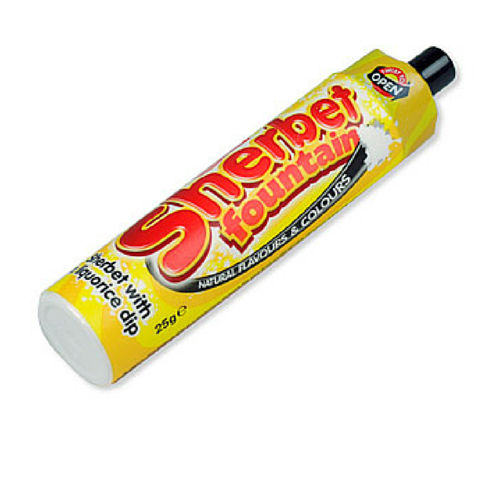Barratt Sherbet Fountain is an iconic treat! This old fashioned candy favourite has been enjoyed since 1925! The packaging has been updated, but don't let that fool you! Sherbet Fountain still has the same great taste! This new packaging just enhances the flavour and allows the sherbet to stay fresher for longer. The black licorice stick is now safely tucked inside the tube, so there's no worry of losing it. After all the white fizzy sherbet goes perfectly with the flavour of black licorice! You'll be taken back in time, flooded with memories! You may not find the fountain of youth, but you are sure to find a fountain of flavour!