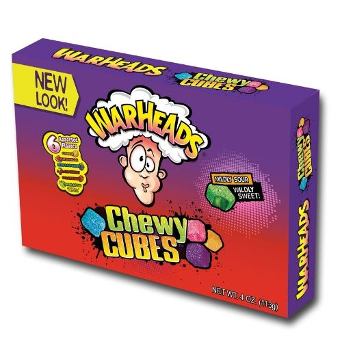 Get ready to pucker up, for your movie date and from the extremely sour taste of the Warheads Candy - Chewy Cubes Sour Candy! This Warheads Candy will make you cringe, but of course in a good sour candy sort of way. These sour cubes are chewy, mouth-watering, irresistible and insanely sour. Coming in the sting of sour and fruity flavours like Black Cherry, Blue Raspberry, Orange, Watermelon and Green Apple. Get ready for a sour candy movie night. Sink into your comfy sofa, and then sink your teeth into the sour Chewy Cubes from Warheads Candy.